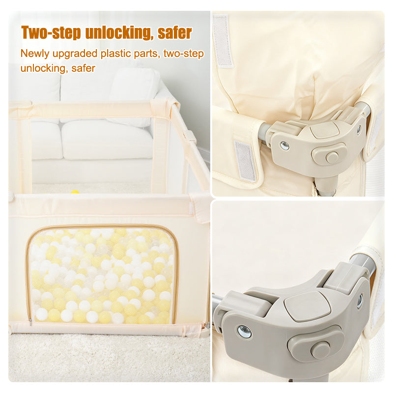 Stable & Anti-Tip: Suction cups or non-slip feet on the base enhance stability and help prevent the playpen from tipping over, even on smooth floors.